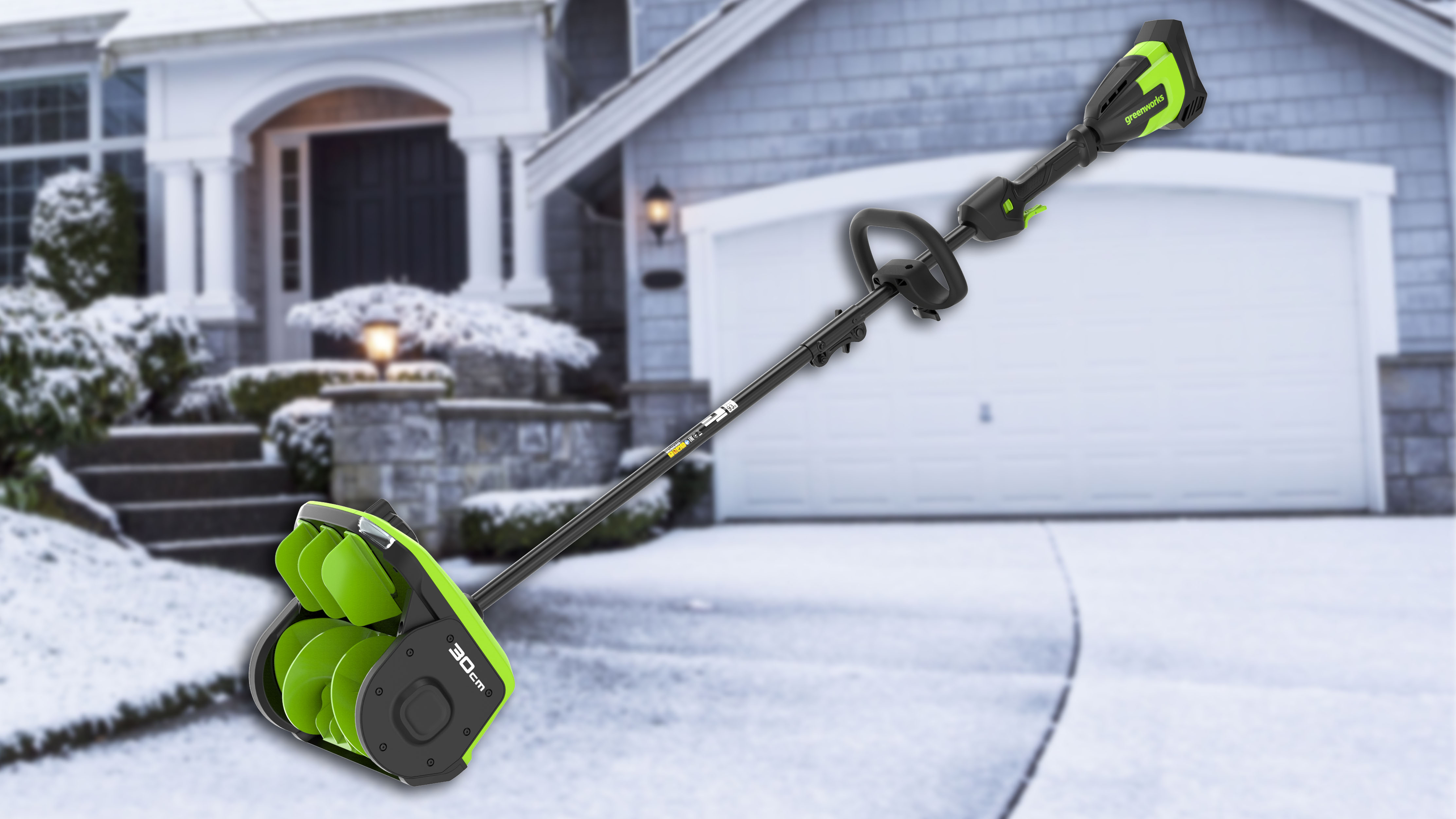Снегоуборщик-лопата Greenworks GD40SS2 — компактный инструмент для быстрой очистки территории зимой. Он работает на платформе 40V и подходит владельцам домов и дач, которым важно удобство и мобильность.