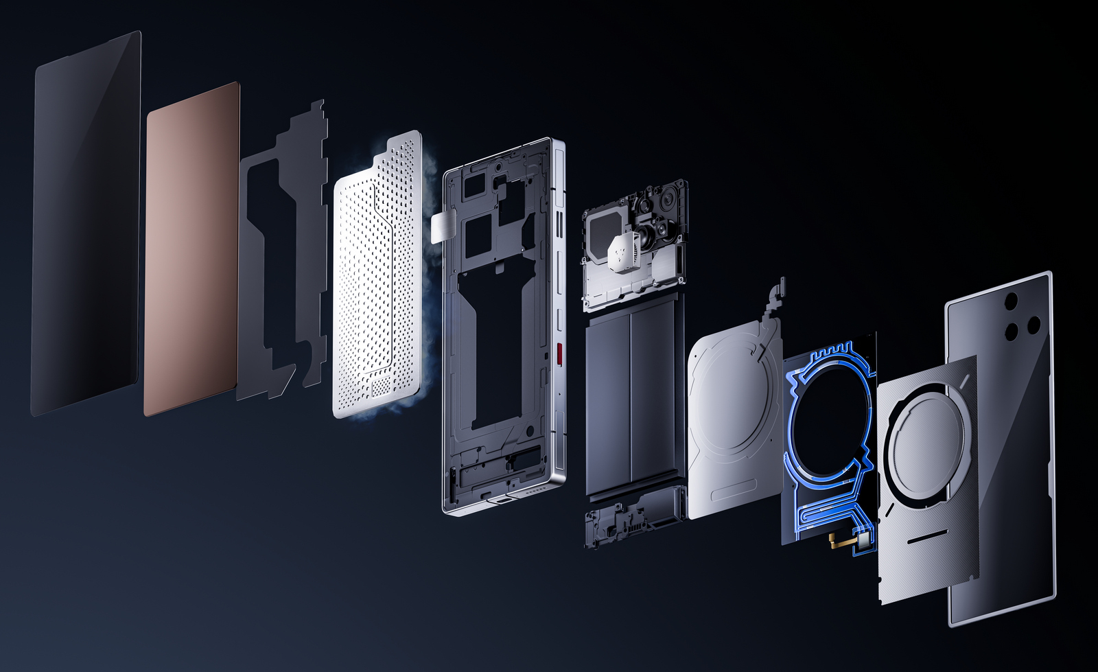Новая серия игровых смартфонов Redmagic 11 Pro оснащена уникальной системой охлаждения, сочетающей жидкостное и воздушное охлаждение. В основе технологии - фторированная жидкость из серверных СЖО и керамический насос толщиной 0.85 мм, работающие в паре с турбовентилятором на 24 000 об/мин. Производитель заявляет о повышении эффективности теплоотвода в 1.5 раза compared с предыдущими моделями.