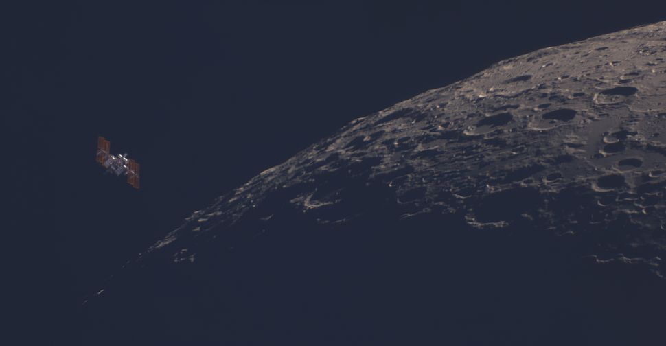Редкий кадр: Международная космическая станция проходит прямо рядом с Луной. Момент длился доли секунды, но фотографу удалось его поймать.