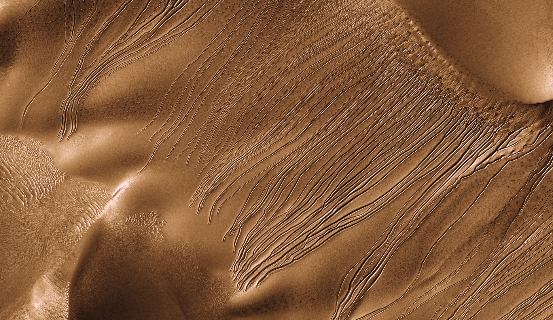 Процесс уникален для Марса из-за сочетания разреженной атмосферы и экстремальных температурных контрастов. Зимой дюны покрываются слоем CO₂-льда толщиной до 70 см, весной глыбы откалываются и начинают свое движение, прорезая характерные овраги с боковыми валиками.