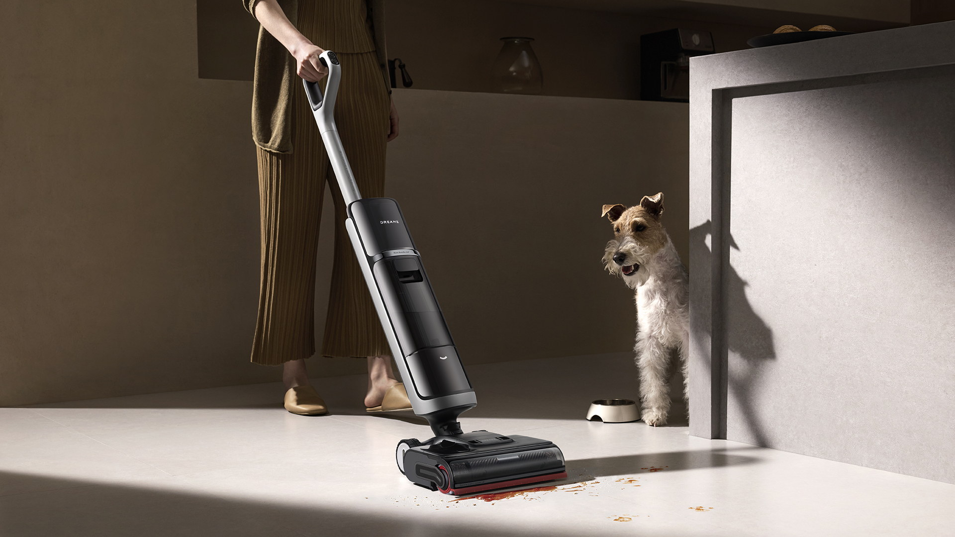 Dreame H15 Pro Heat — один из самых технологичных моющих пылесосов на рынке. Его главная особенность — уборка горячей водой до 85°C, благодаря чему устройство эффективно справляется с жиром, кухонными загрязнениями и въевшимися пятнами. В сочетании с мощностью всасывания 22 000 Па это позволяет одновременно проводить сухую и влажную уборку.